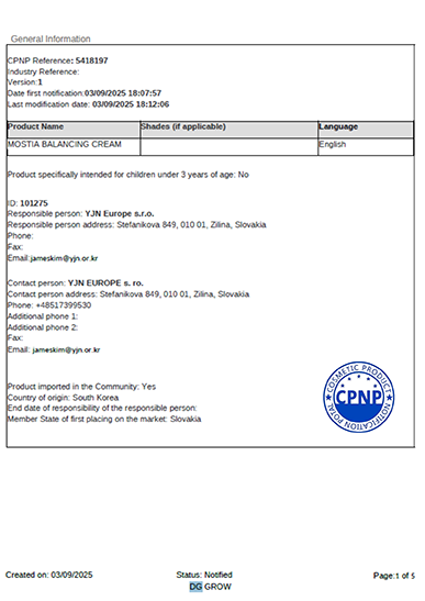 모스티아 3종 유럽화장품 안정성CPNP인증 등록 완료